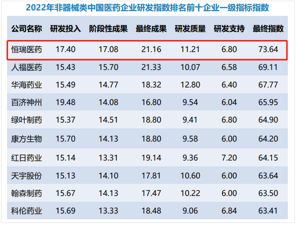 研发量质齐升,AG亚游医药蝉联非器械类中国医药企业研发指数排名榜首